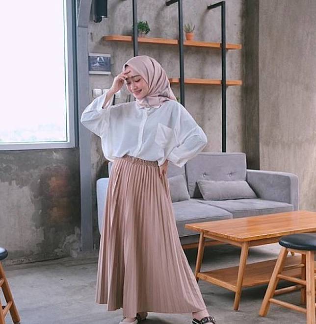 Yuk Tampil Lebih Modis Kece Pakai 4 Rok Plisket Hitam Buat Hijaber Semua Halaman Cewekbanget - Rok plisket putih bukan cuma hitam atau cokelat, rok plisket berwarna putih juga makin digemari, lo.