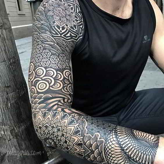 Tatuajes Para Hombres Increibles Disenos Geometricos Para Inspirarse - Hay tatuajes completos en el brazo tanto para hombres como para mujeres, como veras lo que cambia es el diseno y la aplicacion de color en ocasiones, ya que los hombres prefieren tatuajes de un solo tono.